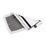 LoopMax е двустранен плетен моп от микрофибър, предлагащ високоефективно почистване на нетекстилни подове. Конструкцията на микрофибърна примка премахва фините частици, а зигзагообразната абразивна шарка подпомага лесното премахване на силни замърсявания и петна. Освен това за допълнителна производителност микрофибърните ресни събират и премахват по-големите частици мръсотия, включително косми, прах и пясък.